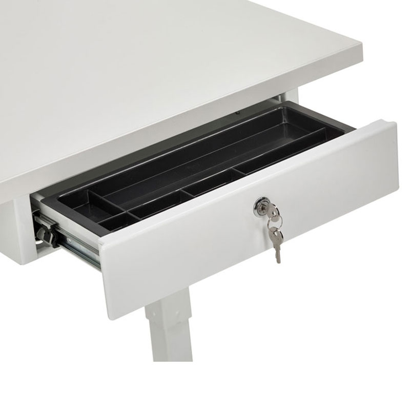 En vit låda som enkelt monteras under skrivbordet. Ett smart sätt att skapa säker förvaring på arbetsplatsen. Lådan är robust och tillverkad i plåt för att klara av påfrestningar. Det ingår 2 st nycklar till låset.