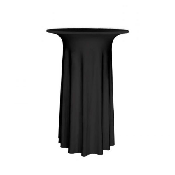 Ståbordsöverdrag Deluxe till runda fällbara bord. De passar perfekt till mässor, konferenser, hotell, festlokaler och event. Stretchtopöverdrag kan printas med logga för reklam (tryck görs enbart på vitt stretch-tyg).